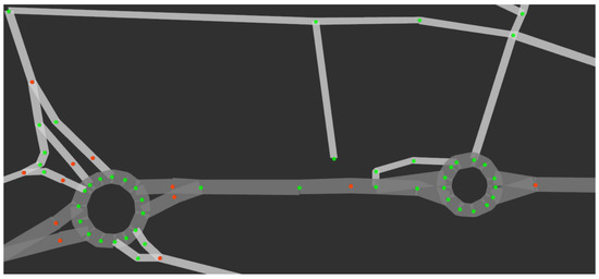 In order to validate this environment recreation feature, a part of Ávila’s road network—a Spanish city—has been replicated inside CARLA Simulator using the previously described methodology. Even though the quantity of OpenStreetMap data available for Ávila is limited, the road network has been recreated successfully both inside CARLA and ROS, creating a fully drivable digital road network of a part of the city in CARLA and obtaining all the environment relevant additional information from OpenStreetMap and publishing it through ROS, making it available for all the systems.