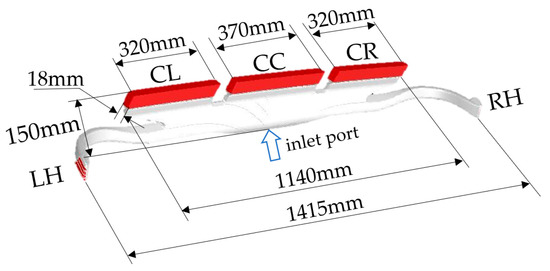 A three-dimensional computational model of the defrosting duct. LH (left hand), CL (center left), CC (center center), CR (center right), RH (right hand).