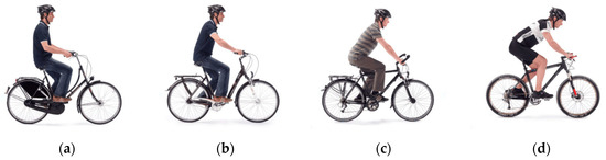 (a) Dutch bike position; (b) city bike position; (c) trekking bike position; (d) racing bike position.