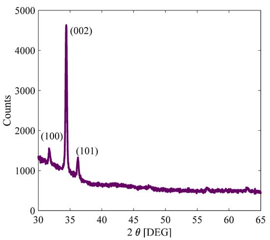 XRD pattern showing the principal planes measured in the studied ZnO sample.