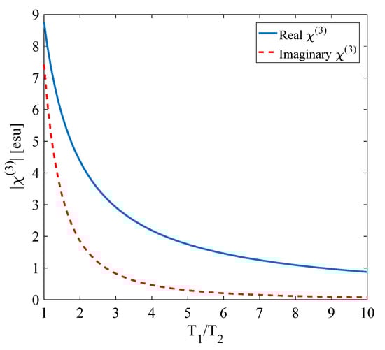 In Equation (6), N describes two-level atoms per unit volume, ħ describes the Planck constant, m is associated with the atomic dipole moment, 1/T1 describes the population loss through radiative and non-radiative processes of the upper quantum level of excitation, and 1/T2 describe the dynamics of a two-level system with a characteristic rate of polarization loss.