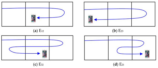 For example, for the case of the UE shown in Figure 3, its state is E12 since the current zone is the center (j = 2) and the last zone is the edge zone where it registered its location (i = 1). If the UE in Figure 3 returns to zone X, its state will be E23 since the last zone is the center (i = 2) and the current zone is the edge zone where it did not register its location most recently (j = 3). In addition, if the above UE with a state of E23 returns to zone Y, its state will be E32 since the last zone is the edge zone where it did not register its location most recently (i = 3) and the current zone is the center (j = 2).