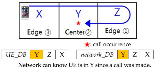 For example, let us assume UE moves in the order of zone X (and registers) → zone Y (and registers) → zone Z (and registers) → zone Y, as shown in Figure 3. In this situation, zone X and zone Z are the edge zones, and zone Z is where location registration occurred most recently, we define this as state 1.