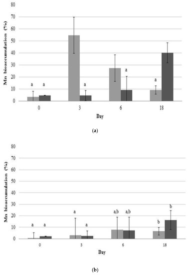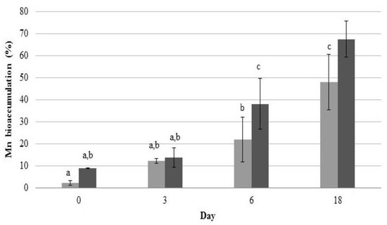 Statistical analysis was performed using the STATISTICA 13.1 PL software (StatSoft, Tulsa, OK, USA). Analysis of variance was performed followed by a post hoc least significant difference test (ANOVA; p < 0.05) to identify any significant differences among the experimental groups. Accumulation of Mn by bacterial strain was expressed as mean ± SD.