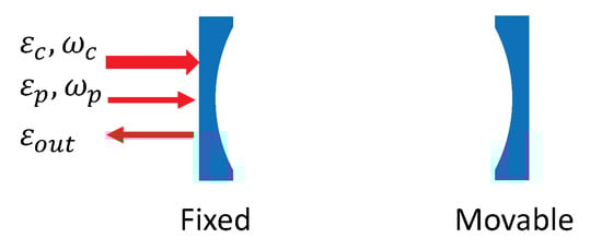 We consider a Fabry–Perot optical cavity with a moving-end mirror, as depicted in Figure 1. The movable mirror is a cubic anharmonic oscillator. An intense coupling field with frequency and a weak probe field with frequency are sent into the optical cavity through the left fixed mirror.