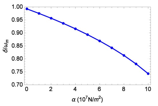 The parameters we use are from the experimental work focusing on slowing, advancing, and switching of the weak probe field []. The frequency of the coupling field is GHz. The cavity decay rate is kHz. The effective mass of the movable mirror is pg, the mechanical frequency MHz, and the mechanical damping rate is Hz. The optomechanical coupling strength is Hz/m. The cavity field is driven by a red-sideband coupling field with . We consider the critically coupled cavity with . The power of the coupling field is W. For the nonlinearity strength N/m, the cubic potential energy is much smaller than the quadratic potential energy since .