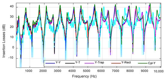 Finally, the total sound pressure at the receiver for each frequency bin will be the summation of all the sound pressure signals for all the selected paths arriving at the receiver, as shown in Equation (1). The last step is to estimate the IL at any frequency using the following equation: