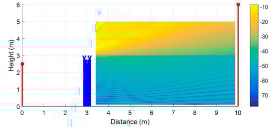 PARDOS (acronym from Spanish ‘Pérdidas Acústicas por Reflexión y Difracción de la Onda Sonora’, which means ‘Acoustic Losses due to Reflection and Diffraction of Sound Waves’) is a user-friendly software tool developed ad-hoc with MATLAB in order to be used for the simulations conducted in this work. The authors demonstrated, made comparisons, and validated such a formulation in [43]. Figure 7 summarizes the flow chart of the software tool’s core to obtain the sound pressure spectrum: