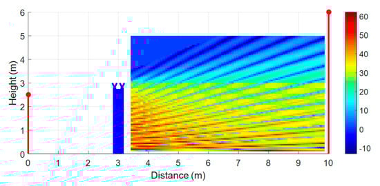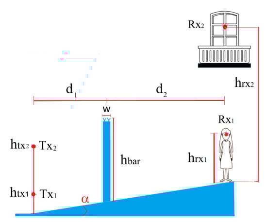 In the same way, we may employ UTD to explain the diffraction coefficient with cylindrical structures using a pair of scattering mechanisms, either being the field’s diffraction or reflection components [49,50]. Thus with the “shadow region” (source-receiver line-of-sight (LoS) absent), we may consider this diffraction coefficient: