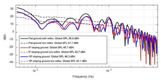 3.1. Influence of Sloping Ground on Global Acoustic Insertion Losses