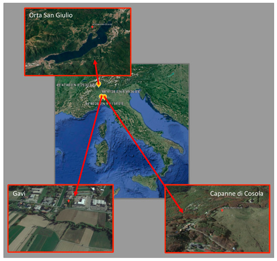 Areas where soil has been collected: a high mountain pasture (1500 a.s.l. located in Capanne di Cosola, Val Borbera, Alessandria, Italy—VB, 44°40′20″ N–9°11′59″ E), a kitchen garden located in Gavi (Alessandria, Italy—O, 44°41′28″ N–8°49′36″ E) and a chestnut wood located close to Lago d’Orta (Orta San Giulio, Novara, Italy—L, 45°47′48″ N–8°25′33″ E).