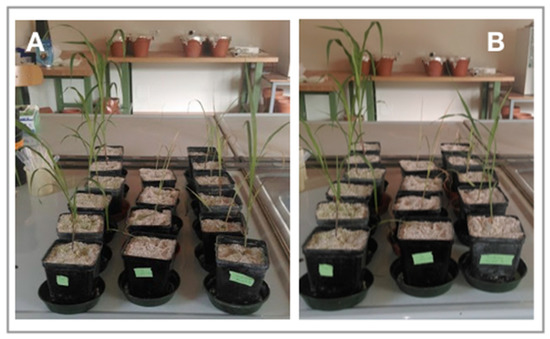 In order to exclude the presence of exogenous microorganisms, surface sterilization of seeds was assessed by incubating some seeds on trypticase soy agar (TSA; Biolife, Milan, Italy) at 28 °C for 96 h [21]. One germinated seed of each plant species was sown in 500 mL plastic pots previously sterilized in 20% NaClO containing 400 mL of each soil type (7 seeds × 3 soil types × 3 plant species, for a total of 63 plants). Plants were grown under greenhouse conditions, watered three times per week with tap water (on Monday, Wednesday, and Friday) and harvested after 1 month.