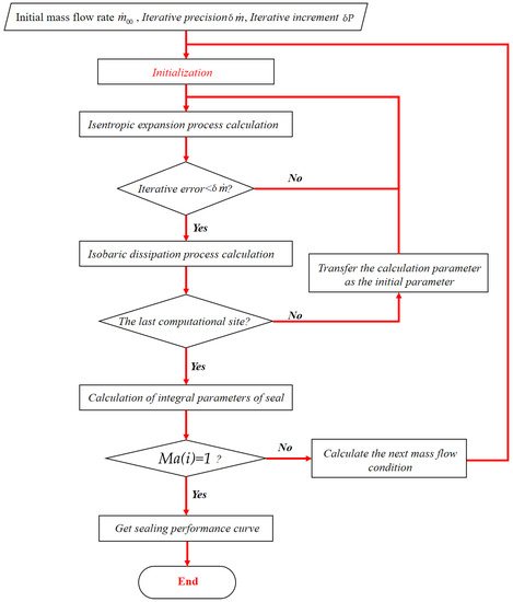 The isentropic expansion process requires iterative computation. The purpose of iteration is to adjust the pressure difference of the seal, so that the computed seal leakage is equal to an expected leakage. Moreover, the specific iteration process is as follows: