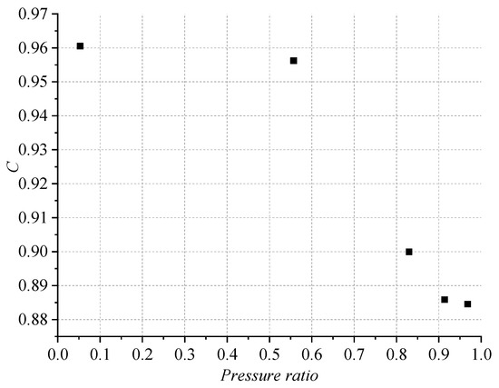 The variation curve of C with pressure ratio based on Kim’s experiment.
