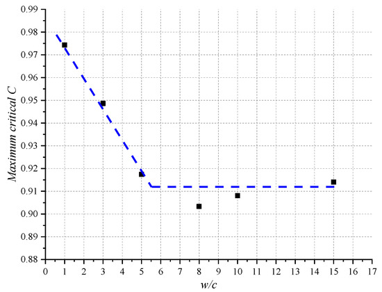 The variation curve of maximum critical C with w/c based on Fan’s experiment.