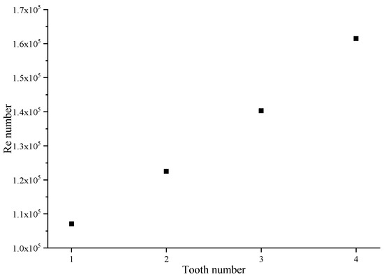 In Equation (8), is the average axial velocity at tooth, m/s; is the axial velocity at tooth calculated by isentropic process, m/s.