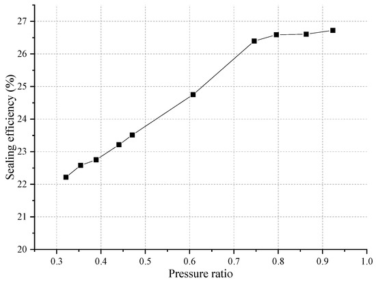 - The sealing efficiency increases as the pressure ratio increases and increases slowly when the pressure ratio is far from the critical pressure.