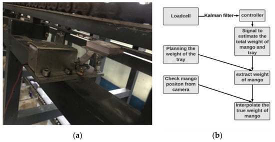This study has been applied and put into practice to experiment in many orchards in Vietnam. The hardware of the grading system is shown in Figure 1. To acquire the data from captured images and evaluate geometric parameters of mangoes, several models are employed. The signal of weight is taken from the load-cell and processed to give weight shown in Figure 2. The signal from the load-cell is eliminated noise by Kalman filter.