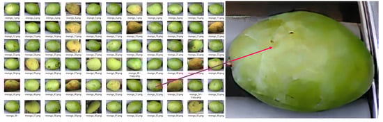 During the movement of mango inside the vision chamber, the image of the mango is sent to a central processor consecutively. The sorting system should handle continuously for a certain time so mango’s images are acquired in real-time. The frame rate is a factor that affects the accuracy of processing. The accuracy is proportional to the increase in frame rate. Therefore, using algorithms to increase frame rate is a suitable choice. Besides, the defect is detected from captured images, therefore depth-aware video frame interpolation [13] is used to ensure the small error estimation. The new ith frame (fi) is created from two adjacent frames (fi−1) and (fi+1), the value of frame rate increases to more double. The new frame is synthesized from 2 successive frames (fi−1) and (fi+1) by arbitrary-time flow interpolation [14]. The intermediate frame (fi) is relied on visual flow from image and image in Equations (7) and (8).