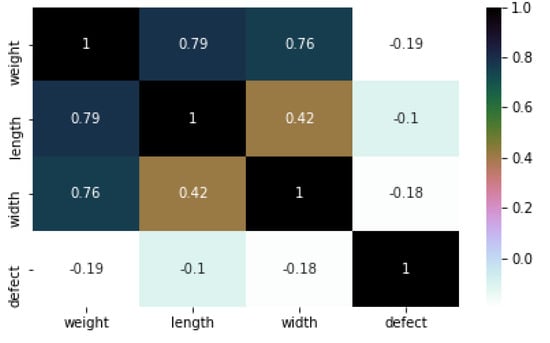 The mango samples were collected to generate data set applying to the machine learning models considered in previous sections. Then, the accidental error was determined from the comparison between the actual value and the estimated one. The measurement error was smaller, so we can say that this data is reliable and considered as the prepared dataset for machine learning algorithms. Then actual sizes were determined and compared with predicted values which are extracted by the vision machine to give the bias. Besides, the grading and sorting the fruit were carried out according to the standard applied largely. The characteristics of length, width, volume, defect, and density are described in Table 1. The column of density is not the appearance in any standard for grading the mango or other tropical fruits because their grades depend on the external features without density.
