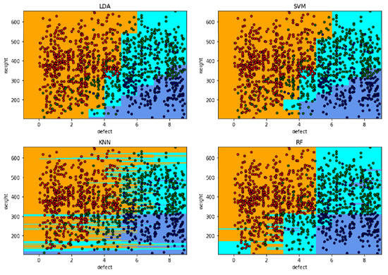 At the same time, KNN and RF classify three mango types, while SVM and LDA use the ‘One_vs_all’ method [26] only to grade a single classifier per class.