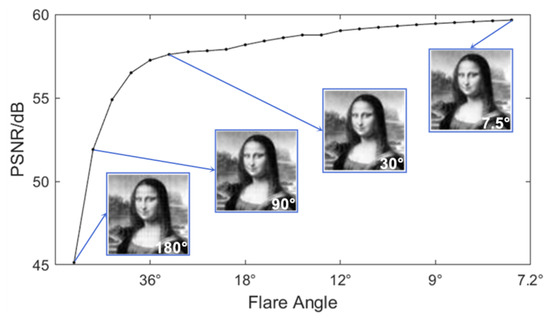 PSNR curve of different flare angles of wavefront recording plane (WRP).
