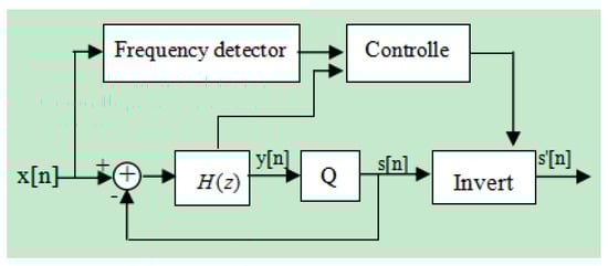 Since this control strategy is based on the cancellation of certain frequency contents of the input sequence of the sigma delta modulator, it only requires a frequency detector [16,17,18] to detect the resonance frequencies of the input sequence of the sigma delta modulator, a neural-network-based controller for finding the solution of the integer programming problem [19,20,21], the buffers and the combinational logic gates as well as an inverter for implementing the proposed control strategy. The block diagram of the proposed method is shown in Figure 1.
