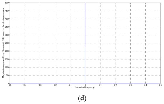 (a) Output of the loop filter when for under our proposed control strategy. (b) Output of the loop filter when for under the clipping control strategy [7]. (c) Magnitude response of the output of the loop filter when for under our proposed control strategy. (d) Magnitude response of the output of the loop filter when for under the clipping control strategy [7].