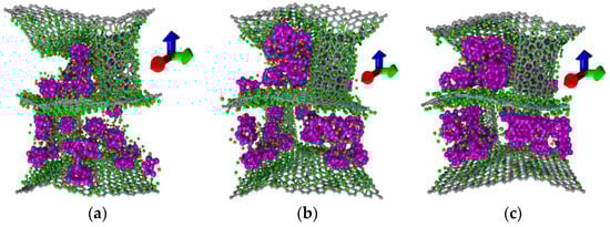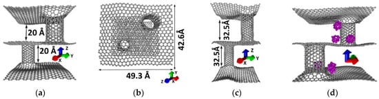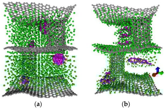 - Wang, C.-H.; Fang, T.-H.; Sun, W.-L. Mechanical properties of pillared-graphene nanostructures using molecular dynamics simulations. J. Phys. D Appl. Phys. 2014, 47, 405302. [Google Scholar] [CrossRef]