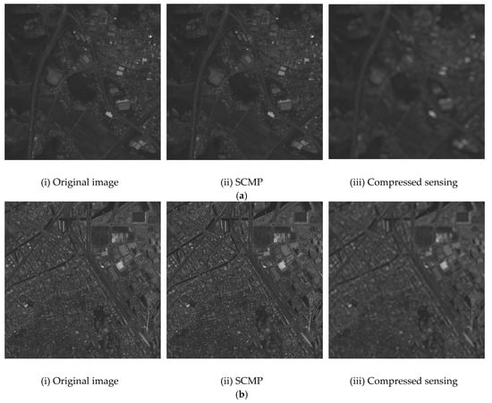 Intensity of RGB images of (a) Nihonmatsu, (b) Yokohama. (i) Intensity of the original image, (ii) intensity of SCMP, (iii) intensity obtained via compressed sensing.