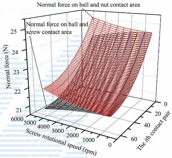 In the quasi-static model in which the screw speed is not considered, it is considered that the normal forces and contact angles of the ith ball and the screw and nut raceway are equal, that is,