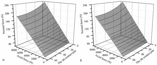 The flow chart in Figure 9 describes the process of calculating the contact parameters of each contact pair by using the numerical solution based on the dynamic contact mechanics model of SNBSP in this paper.