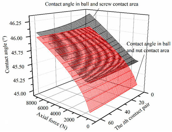 Then, the relationship between the axial force of the screw nut pair and the loads of the ball and raceway contact pairs can be represented as follows: