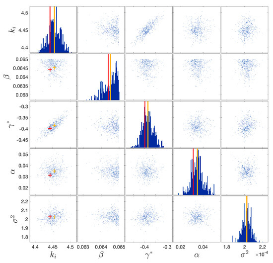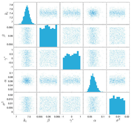 This can be achieved by transforming the input variables, namely removing the parameter and introducing an auxiliary variable Hence, for a joint realization of the parameters and , the actual parameter reads: for . The standard deviations of the latter parameters were computed trivially once the supports of the uniform distributions were defined. To infer the unknown residual variances (Equation (9)), a uniform prior distribution was assumed: