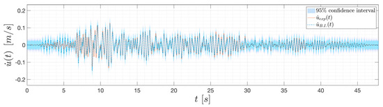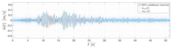This realistic case study has shown that a Gaussian discrepancy term, with null mean and unknown variance, is an effective choice to tackle the model inaccuracy rising for low levels of degradation when the aim is inference of the system’s initial stiffness. At the same time, it has been proven that this kind of discrepancy still works fine for low levels of damage even if the input is rescaled up to 1 g. Consequently, the discrepancy term adopted can be judged suitable to cover model errors with increasing values of the PGA. However, higher levels of PGA introduce higher uncertainties in the model prediction. It has been shown that increasing the amount of degradation jointly to the level of damage leads to inaccurate predictions for those models that are inconsistent with the original physical BWBN model and more uncertainty also arises in the latter. This can be appreciated, for example, in the velocity response prediction of Model 3 (Figure 15). This is the model that leads to the worst model prediction for high level of degradation, owing to the presence of a greater number of overestimated outliers.