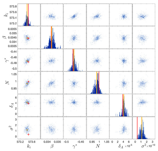 whose standard deviation was set equal to the maximum of the absolute value over the time of the experimental observation . Markov Chain Monte Carlo (MCMC) simulations have been conducted using MATLAB-based Uncertainty Quantification framework UQLab-V1.3-113® [6] with 100 chains, 700 steps and AIES solver algorithm [28]. The number of the BWBN forward model calls in MCMC was 70′000. The system of ordinary differential equation (ODEs; Equations (10) and (12)) was solved with the MATLAB solver ode45 (explicit Runge–Kutta method with relative error tolerance 1 × 10−3). The Latin hypercube sampling (LHS) method was used to get the parameters prior distributions (Table 2) of the BWBN model, which are shown in Figure 4.