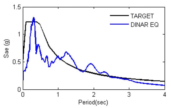 Selected and created earthquakes were best fit with the adopted target spectrums. Comparison of the response spectrum of the Dinar earthquake (Mw 6.0) on Oct 10, 1995, with the target spectrum for ground motion level 2, is shown in Figure 6. Comparisons of the response spectrum of synthetic loadings with corresponding target spectrums are plotted in Figure 7.