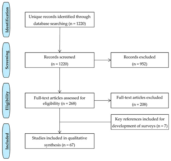 - Moher, D.; Liberati, A.; Tetzlaff, J.; Altman, D.G.; Group, T.P. Preferred Reporting Items for Systematic Reviews and Meta-Analyses: The PRISMA Statement. PLoS Med. 2009, 6, e1000097. [Google Scholar] [CrossRef]