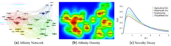 Based on the parameter estimation, in the next section citation dynamics are analyzed in terms of affinity network, affinity density, and novelty decay across subfields of sciences.