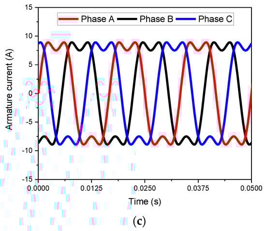 (a) Three-phase inverter, (b) single-phase inverter, and (c) armature currents.