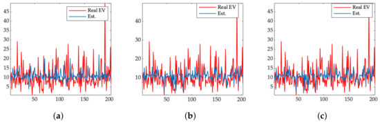Actual estimated EV using (a) endogenous, (b) exogenous, (c) endogenous and exogenous variables.