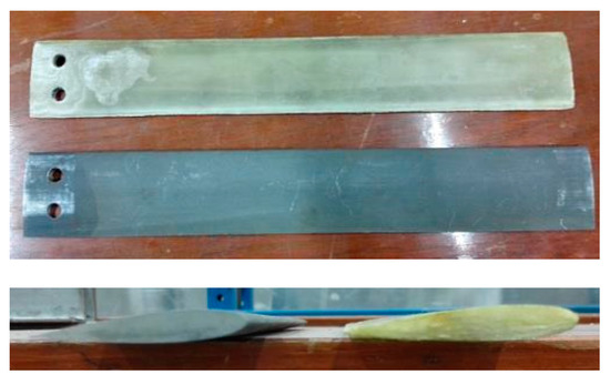 In experiments, different materials are often used to make rotor blades. In this paper, the influence of blade materials on the ice shape was studied. In order to ensure the same icing conditions, we installed two blades of steel and composite material on the rotating mechanism, which were cross-distributed, as shown in Figure 14. The experiment was carried out under case 9. The icing situation of rotor blade is shown in Figure 15, and the comparison of ice shape is given in Figure 16. It can be seen that the icing of rotor blades of different materials was similar. For the whole rotor blade, there was more ice at the tip and less at the root. The overflow liquid water was frozen into ice at the blade tip, and its shape was similar. The ice shapes on the cross-section were almost the same, and the ice thickness and icing range were not different, which indicated that the influence of blade material on icing was relatively small. This was because the blade material had a certain influence on the ice accretion at the initial time, but the ice accretion in the subsequent time gradually increased on the basis of the ice accretion at the initial time. The influence of material on icing process was gradually weakened. Therefore, the material properties may have had little effect on the ice shape. However, the chord length was small and the Mach number of the blade tip was low in this experiment, and thus the liquid water flow may not have been significant. More large-scale experiments can be carried out to verify the conjecture in this paper.