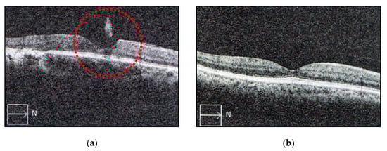 (a) Image of vitreous opacity in the posterior vitreous was observed by the optical coherence tomography (OCT) before treatment; (b) symptomatic image of vitreous opacity in the humor vitreous disappeared after taking three fruit enzymes supplement for three months.