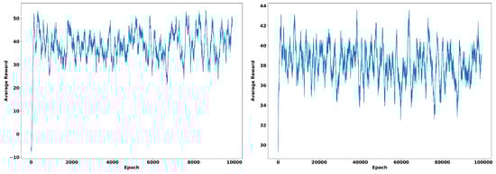 The learning rate or step-size parameter () affects how much the difference between a previous and a new Q-value is considered. Generally, constant small learning rates are effective in nonstationary problems in which the reward probabilities change over time. In those cases, more weight is given to recent rewards than long-past rewards. In contrast, when true values of the actions are assumed to be stationary, then the sample-average method (Equation (3)) may be used in order to average the rewards incrementally and guaranteed convergence to the true action values.