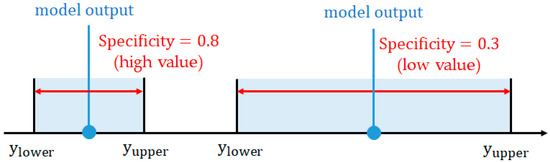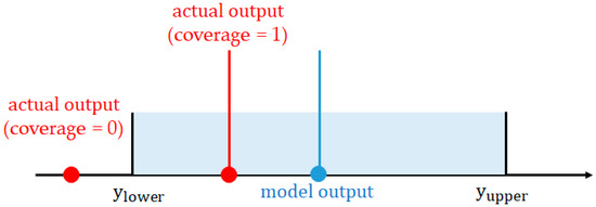 In this study, the PI method evaluates the prediction capability of interval-based IGM. This method evaluates performance by using the property of coverage and specificity. The initial PI method was proposed by Pedrycz, and since then, various PI methods have been proposed by Hu [27], Galaviz [28], and Zhu [29]. Figure 7 and Figure 8 show the characteristics of coverage and specificity, respectively.
