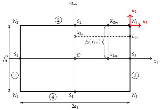 Expressions (19)–(24) constitute mathematical model of considered plate. According to this model plate is in internal equilibrium with outer load , but boundary conditions are not satisfied here. Unknown coefficients are degrees of freedom of the plate. They are determined satisfying boundary conditions at the separate points of the contour. Let us consider technique of their generation.