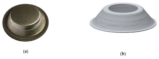 Comparison of the test samples and the simulated samples: (a) the test formed part; and (b) the simulation formed part.