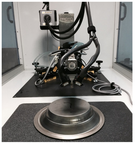 The 300W XRD Portable residual stress measuring instrument is used for the measurement. As shown in Figure 14, the MG40 goniometer and bracket can be used to realize the displacement change in the direction of the Z axis. The above-mentioned instruments are from Proto, Canada. The range of the 2θ diffraction angle is from 110° to 171°. The Mn target and the Mn-Kα radiation are used in the measurement.