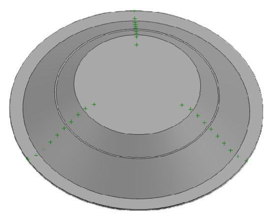 According to the regulation of GB/T 7704-2017, three cross sections are uniformly taken on the surface of the conical part, and the positions of the intersections are marked by points. The location of the samples is shown in Figure 15.