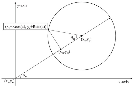 where a = . The is the angle of the straight line of the source node and the center point and presented as